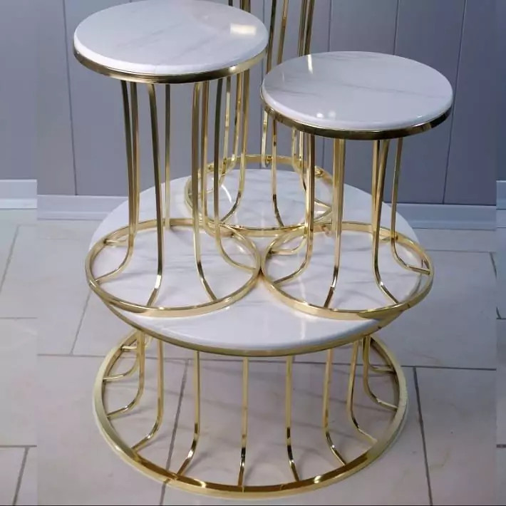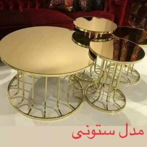 میز جلومبلی عسلی قهوه خوری پاف مدل ستونی فورتیک طلایی