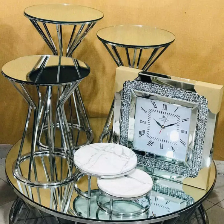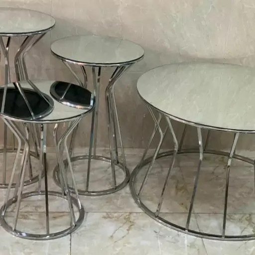 میز جلومبلی قهوه خوری پاف مدل چتری کروم نقره ای میز فلزی با آبکاری ماندگار کروم نقره ای صفحه شیشه دودی و برنز و یا چوب ام دی اف وکیوم هایگلاس