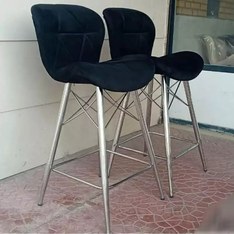 صندلی اپن کانتر جزیره بار پیشخوان مدل پایه فلزی بلند زین اسبی نقره ای