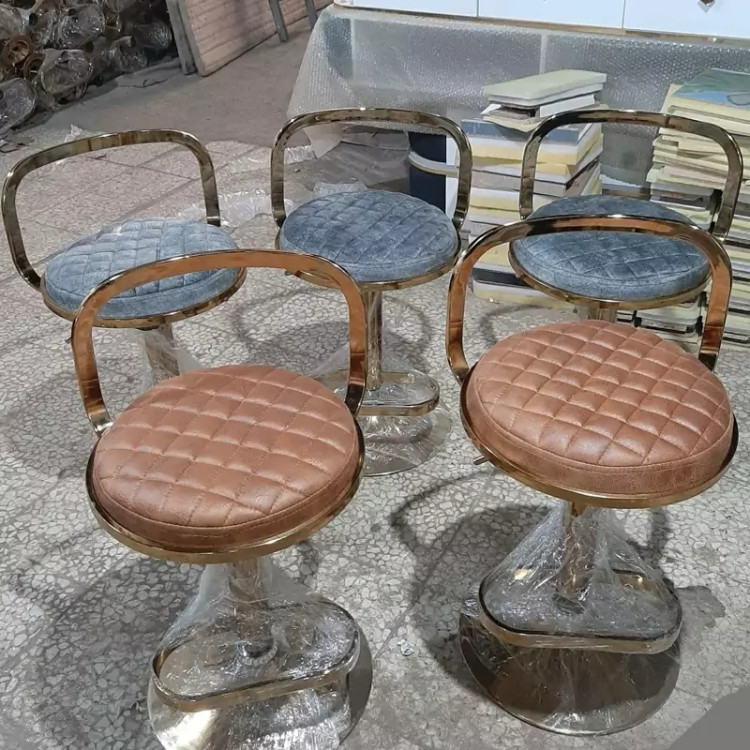 صندلی اپن کانتر جزیره بار پیشخوان صندوق مدل زیمر بدنه فلز با آبکاری فورتیک طلایی و کروم نقره ای کف MDF ، فوم سر و روکش چرم و پارچه مرغوب با رنگبندی متنوع به انتخاب مشتری