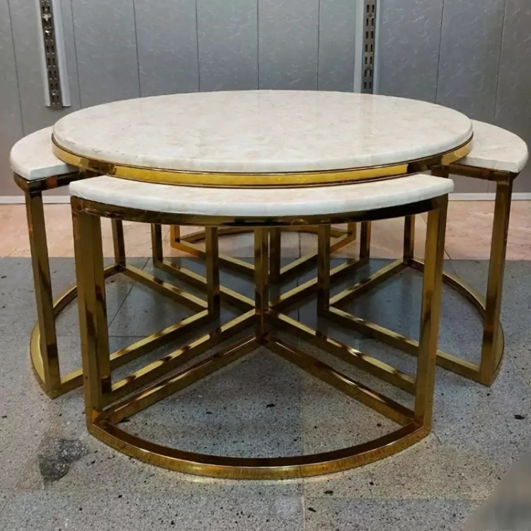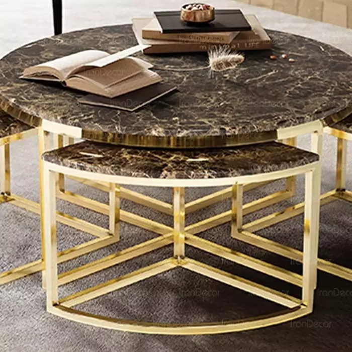 میز جلو مبلی عسلی قهوه خوری پاف مدل پیتزایی گرد فورتیک طلایی