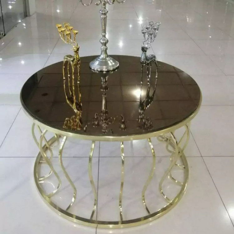 میز جلومبلی عسلی قهوه خوری پاف مدل گلدانی فورتیک طلایی بدنه از جنس پروفیل آهن آبکاری ماندگار فورتیک طلایی صفحه شیشه دودی و برنز و یا چوب ام دی اف با روکش وکیوم هایگلاس