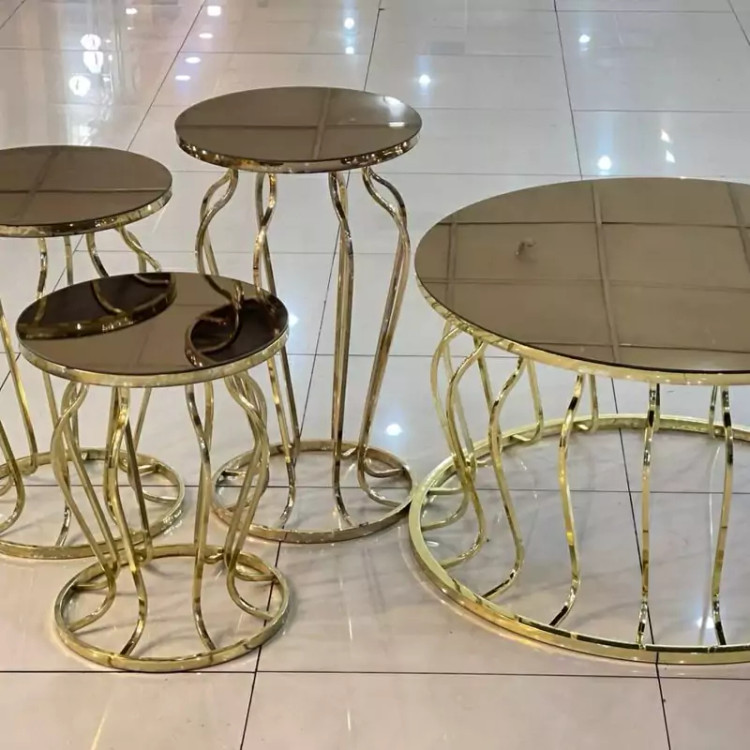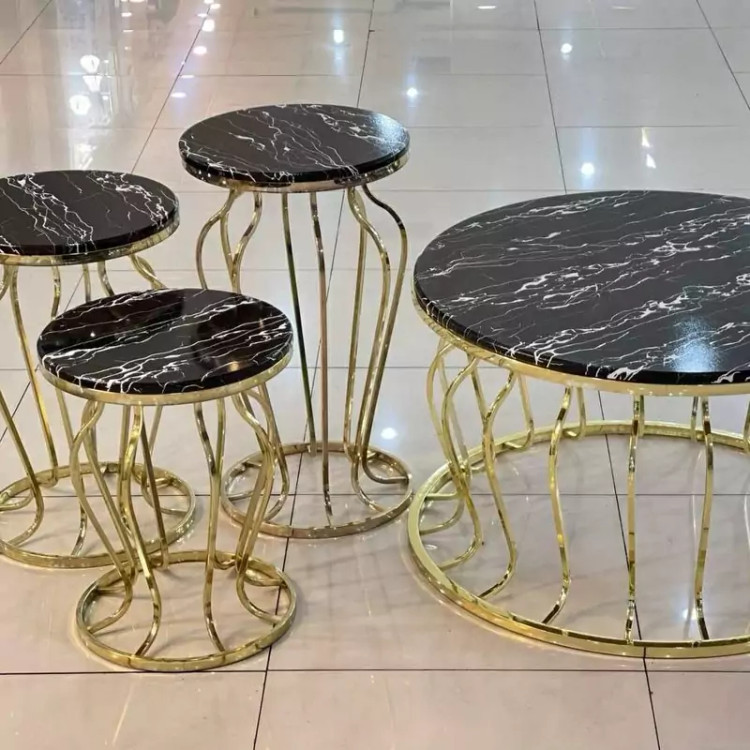 میز جلومبلی عسلی قهوه خوری پاف مدل گلدانی فورتیک طلایی