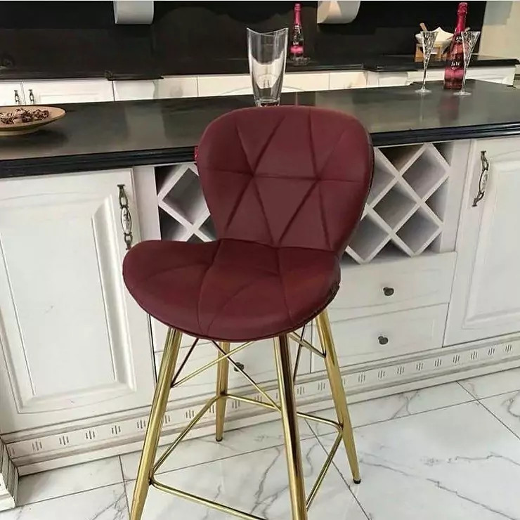 صندلی اپن کانتر جزیره بار پیشخوان مدل پایه ثابت بلند زین اسبی طلایی