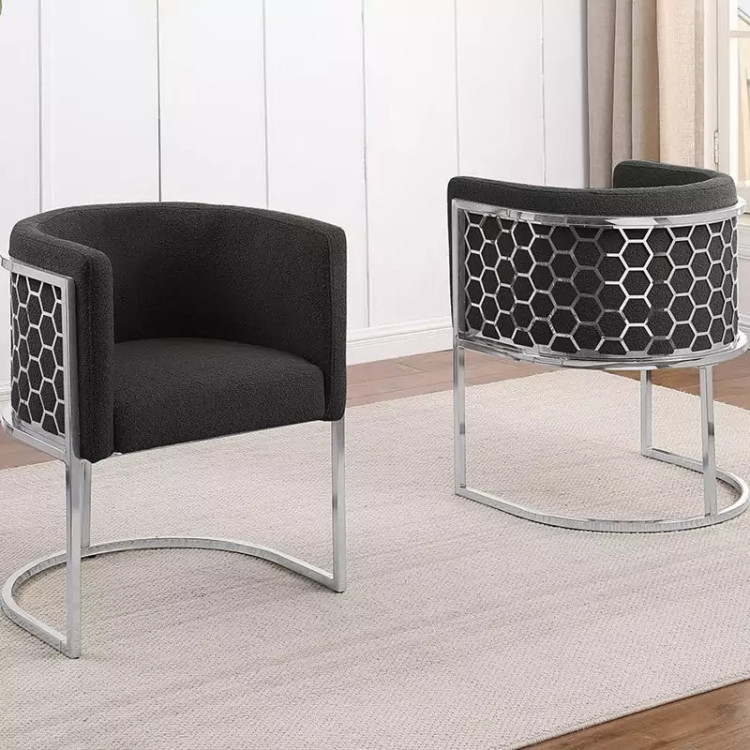صندلی نهارخوری اپن کانتر بار جزیره اشپزخانه دورن زنبوری پایه فلزی آبکاری کروم نقره ای و فورتیک طلایی و مشکی استاتیک پارچه و چرم در رنگبندی متنوع به انتخاب مشتری تولید میشود (لطفا پس از ثبت سفارش رنگ و نوع روکش و رنگ پایه از طریق پیام در قسمت گفت گو اعلام فرمایید) مشتریان محترم دقت فرمایید کلیه فروش این فروشگاه پس کرایه بود است و کرایه پرداختی به سایت صرفا هزینه حمل محصول از کارخانه به باربری تهران بوده است. هزینه حمل هر صندلی به شهرستان ها متغیر از 80 الی 130 هزار تومان بر عهده خریدار می باشد.
