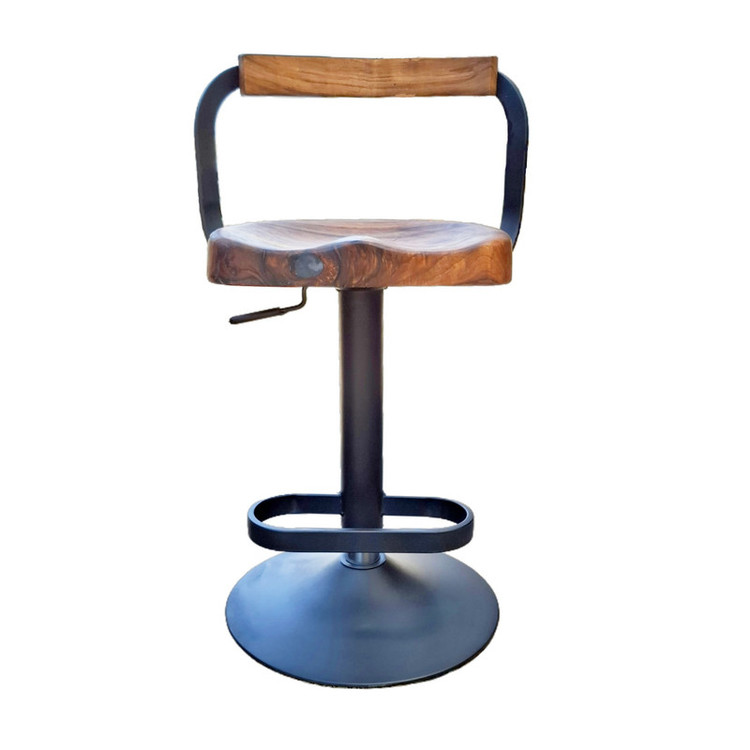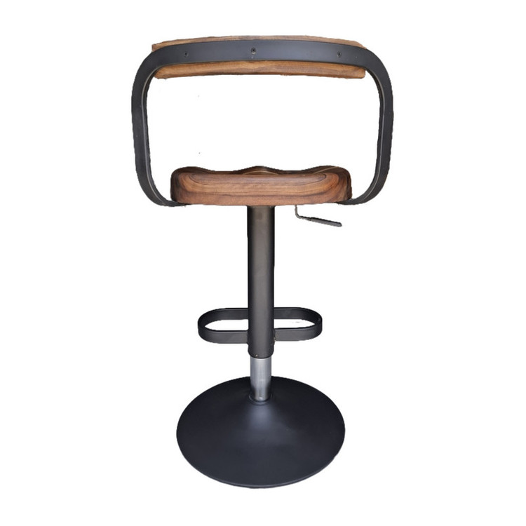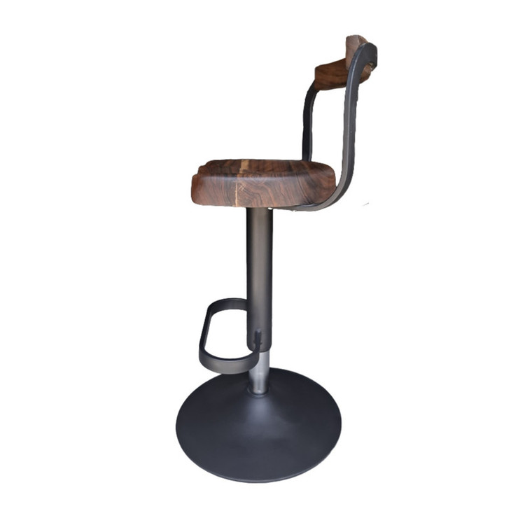 این صندلی با طراحی زیبا و صنعتی، ترکیبی از چوب طبیعی و فلز مقاوم را به نمایش میگذارد. نشیمنگاه و تکیهگاه آن از چوب گردو ساخته شدهاند که بافت طبیعی و رنگ گرم چوب، حس گرما و اصالت را به فضا میبخشد. پایهی صندلی از جنس فلز با رنگ کورهای استاتیک است که در برابر خط و خش و زنگزدگی مقاومت بالایی دارد. همچنین این صندلی به یک جک کلاس ۴ مجهز است که امکان تنظیم ارتفاع را بهراحتی برای کاربر فراهم میکند. طراحی ارگونومیک به همراه جای پای فلزی، راحتی استفاده از این صندلی را دوچندان میسازد. این محصول انتخابی ایدهآل برای فضاهای مدرن، کافیشاپها، بارها و آشپزخانههای معاصر است.
