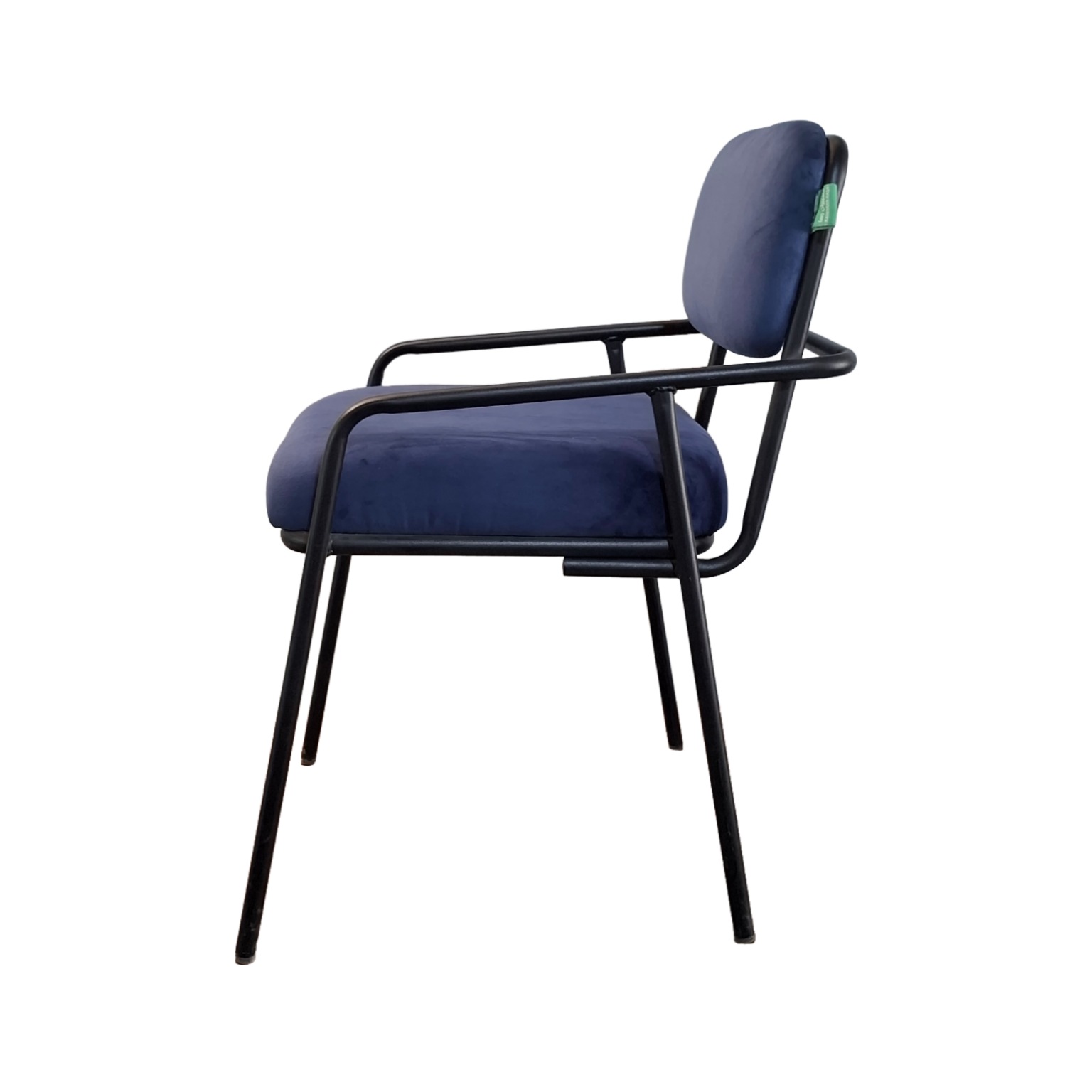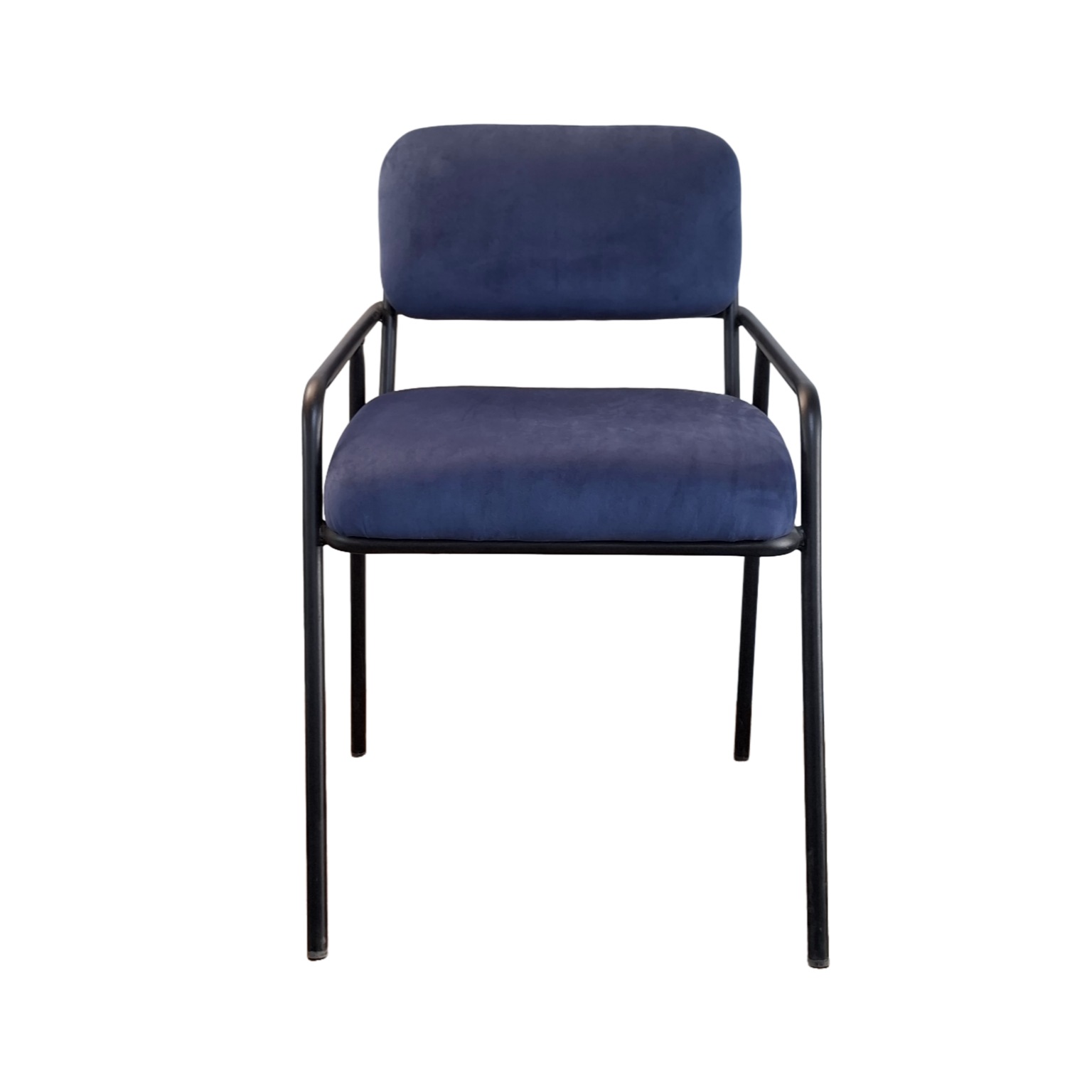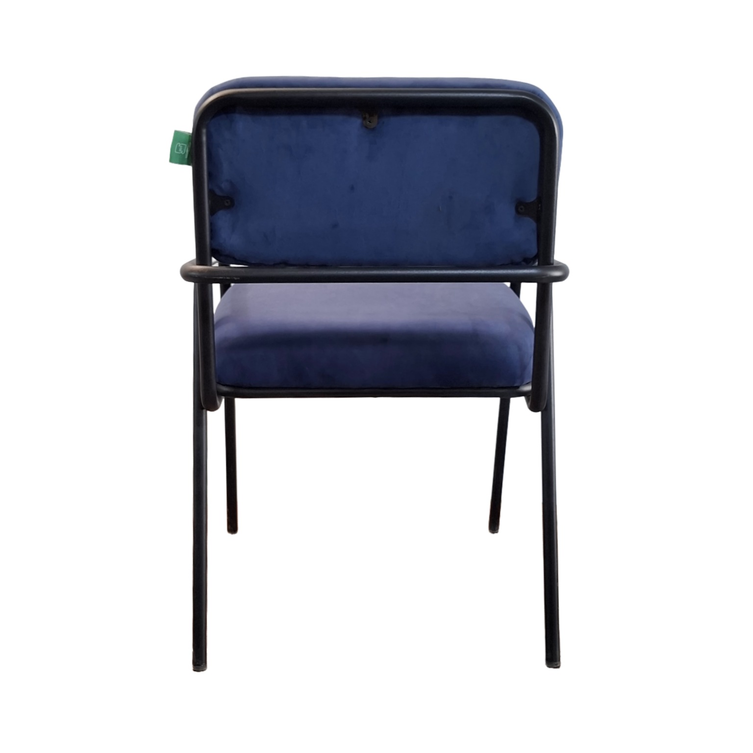 این صندلی دارای پایههای فلزی مشکیرنگ و نشیمنگاهی با روکش پارچه مخمل آبی نفتی است. طراحی آن ساده و مدرن بوده و برای استفاده در فضاهایی مانند آشپزخانه، کافه یا رستوران مناسب است.