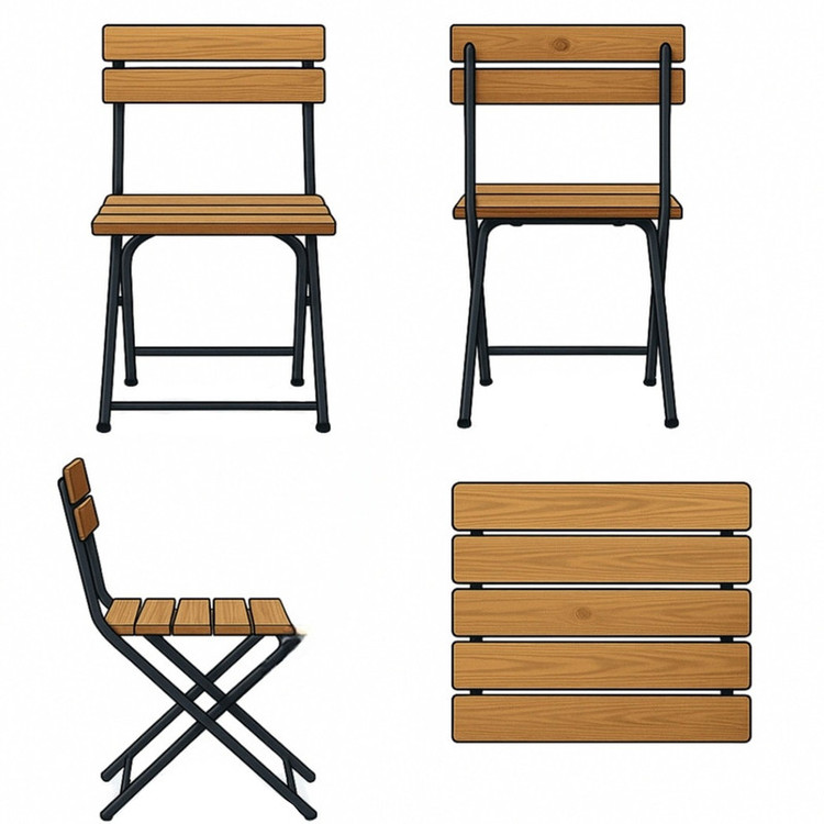 جنس و متریال: رنگ پایه استاتیککوره ای ضد ساییدگی و پریدگی میباشد. صفحات چوبیاین صندلی ساخته شده از تختههای چوبی با رنگ طبیعی یا گرم، دارای بافت و گرههای مشخص که حس طبیعی و گرم چوب را منتقل میکند. فریم فلزی این صندلی فلز با رنگ مشکی مات (پودری)، مقاوم در برابر زنگزدگی و مناسب برای فضای باز میباشد. ویژگیها قابلتا شدن (Foldable): امکان تا کردن صندلیها و میز برای ذخیرهسازی آسان، ایدهآل برای فضاهای کوچک مثل بالکن، تراس یا کافههای کوچک نگاه هارا جلب میکند. طراحی ساده و کاربردی این صندلی،ظاهری مینیمال و مدرن که با اکثر دکورها هماهنگ میشود. سبک و قابلحمل است.بهراحتی جابجا میشود و نصب یا باز و بسته کردن آن سریع است. - ابعاد این صندلیها: استاندارد با ارتفاع نشیمن حدود 45 سانتیمتر است.مناسب برای استفاده در: بالکن یا تراس است.حیاط یا باغچه است . کافه و رستورانهای فضای باز است. فضاهای داخلی کوچک است.
